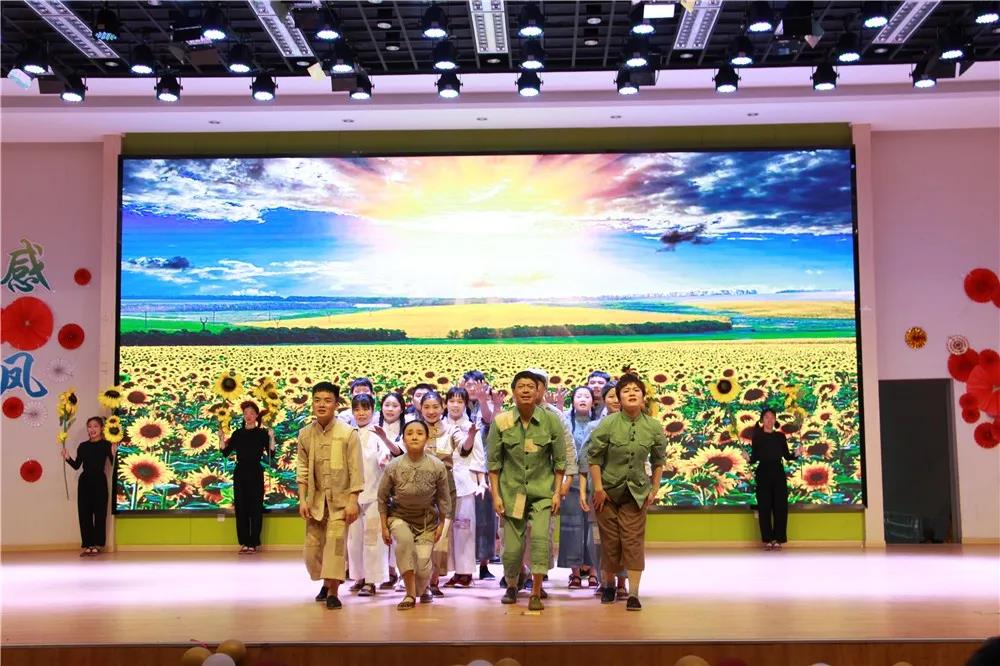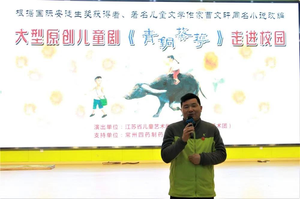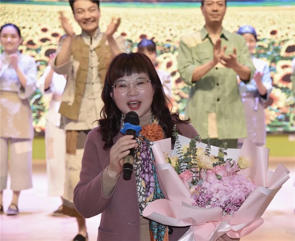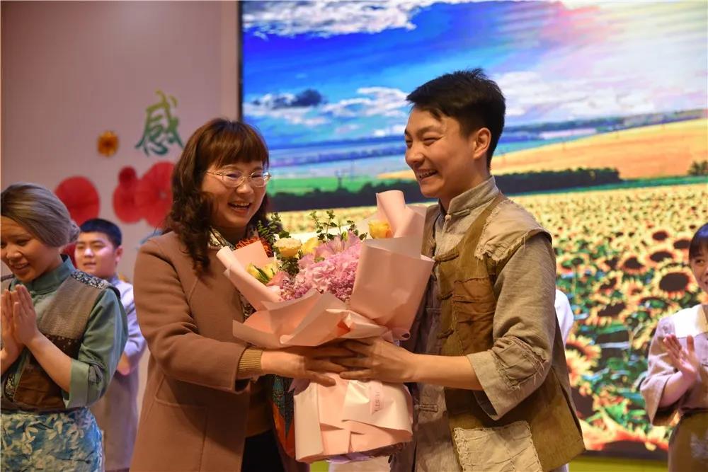 活动最后,我校书记、副校长谢春华给演出团队送上了鲜花,感谢他们的辛苦付出,为精彩表演喝彩,同时也祝贺《青铜葵花》在天宁区首次演出的成功!