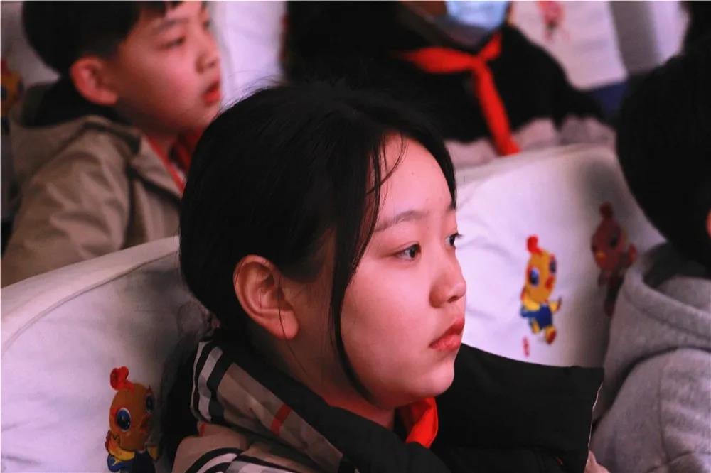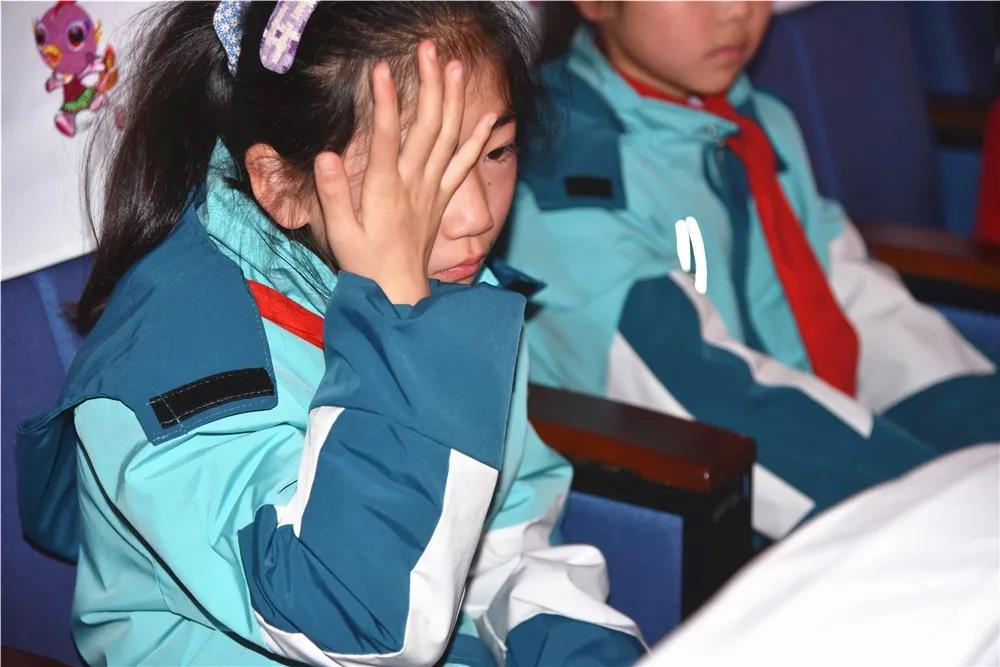 表演在一声声浑厚的钟声中拉开了序幕。歌曲《冬天的温暖》,一下子就吸引了龙娃们。聪明善良的青铜,孝顺懂事的葵花,坚强慈爱的青铜奶奶,热心友爱的村民,无不给大家留下了深刻的印象。孩子们随着跌宕起伏的剧情,时而热烈鼓掌;时而哈哈大笑;时而眉头紧锁;时而感动流泪……剧终时,在青铜和葵花分别的那一刻,青铜的那一声声“葵花”,顿时把气氛带入了高潮,孩子们被兄妹之间的爱所感动,掌声经久不息。