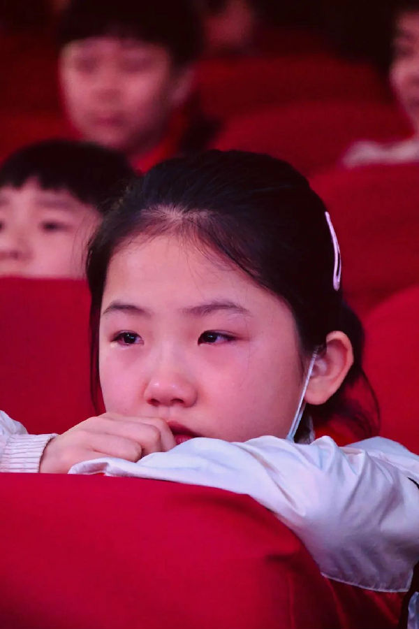 随着跌宕起伏的剧情,孩子们时而兴奋不已,热烈鼓掌;时而紧锁眉头,感动落泪。孩子们随着青铜和葵花一起跑,一起跳,—起在清贫的生活中与苦难结伴而行。
