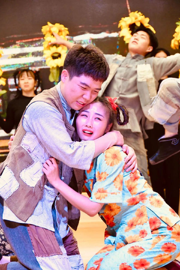 听着那优美的唱词, 看着演员们的出色表演,我被精彩的剧情深深地感染了,感动处泪如雨下。青铜和葵花在遭遇了水灾之后蜕变得更加坚强、乐观。可一起长大的两个孩子,想要愉快的分离却是那么不容易, 这痛苦让青铜变得有些痴呆,甚至让哑巴青铜用尽平生力气,吐字不清地大喊出了:“葵-花!" 这是青铜的“心声”! 这样的痛苦经历是我们生活在糖水里的孩子无法用心体会的。