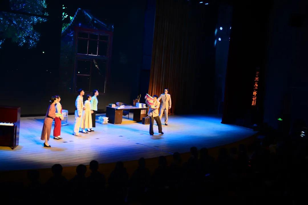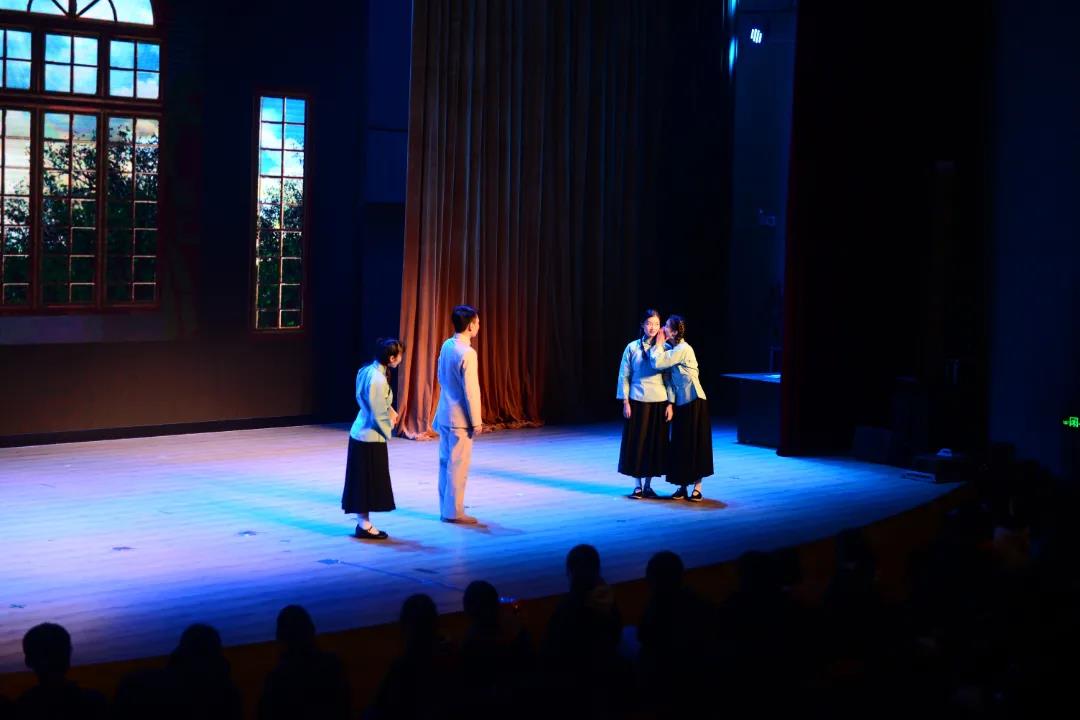 演员们富有张力的表演,富有年代感的舞台细节,还原了那个年代的味道与色彩,在场的学生和老师们深深的沉浸在剧情之中。妙趣横生的家庭故事、国之栋梁们的大爱厚德、青年才俊们走向革命道路的英勇无畏,一次又一次着扣动在场师生的心弦,活动现场多次响起雷鸣般的掌声。