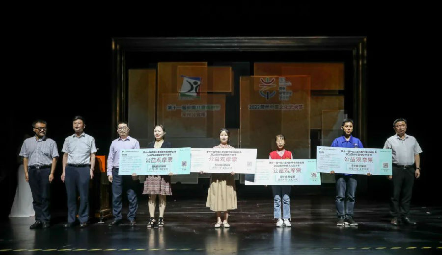 活动现场向常州一加爱心社、向日葵康复中心等公益慈善机构的孤残儿童、外来务工人员子女赠送演出票。先进人物代表与市民代表共同观摩开幕演出《野蜂飞舞》。