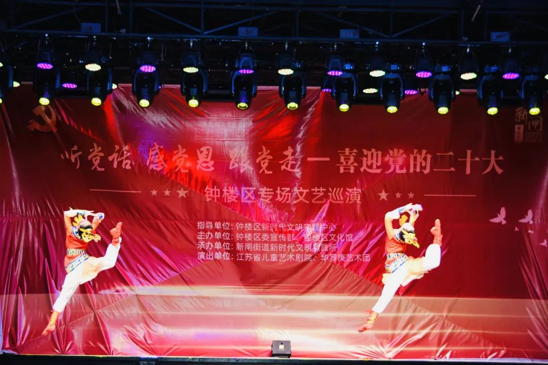 本次文艺巡演活动作为2022新闸荷花节的系列活动之一,由钟楼区新时代文明实践中心指导,钟楼区委宣传部、钟楼区文化馆主办,新闸街道新时代文明实践所承办,节目由江苏省儿童艺术剧院、华罗庚艺术团创作排演。演出当天,十余个精彩绝伦的节目轮番登场,用舞蹈、小品、歌曲等多种形式展现了人们健康向上的精神风貌和对幸福生活的由衷赞美。现场其乐融融,观演居民赞不绝口,现场不时发出阵阵掌声。