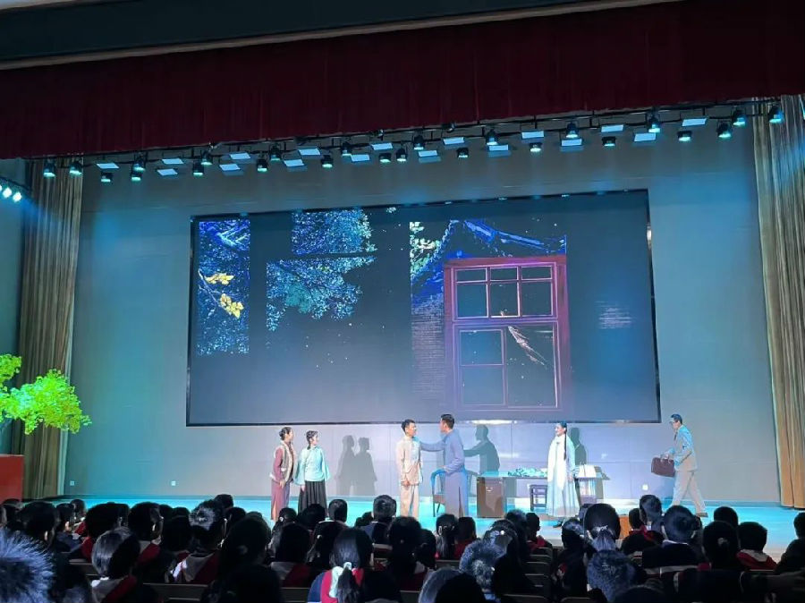 “《野蜂飞舞》作为一部长篇小说,情节复杂、人物众多,经过改编,成功将其浓缩在一个多小时、有限的数个场景中,并最终呈现为立体的舞台剧形态,着实不易。”演员们倾情演绎了坚贞不屈的爱国青年和共产党人。演出最后一幕,沈天路毅然决然走向了参军之路,不畏生死,感动了在场所有的同学,大家致以掌声。同学们沉浸在剧情中,在妙趣横生的家庭故事中感受其乐融融的温情,也因紧迫的战争而饱含热泪,与八十年前的青年们,进行了跨越时空的深刻对话。