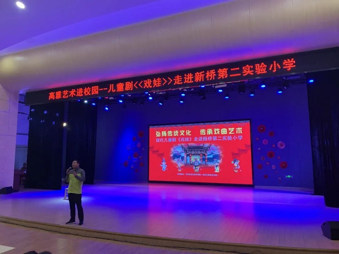周三上午、新桥第二实验小学四五六年级的同学们排着整齐的队伍,这是要去干嘛?看戏剧节目!没错,我们期待已久的《戏娃》就要来了!学校邀请了江苏省儿童艺术团来为我们表演一场叫《戏娃》的节目,让我们近距离感受非遗文化的魅力。